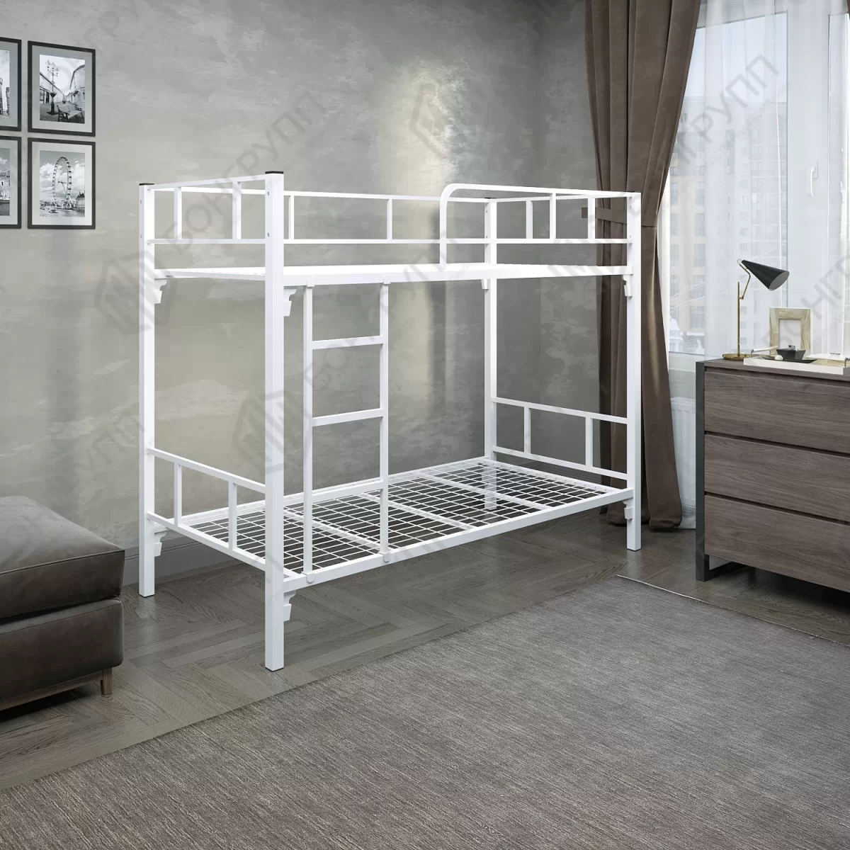 Двухъярусная кровать «Гамма-2» в белом цвете выполнена из металла и способна выдерживать нагрузку до 150 кг на одно спальное место. Это делает её подходящей как для детей, так и для взрослых.